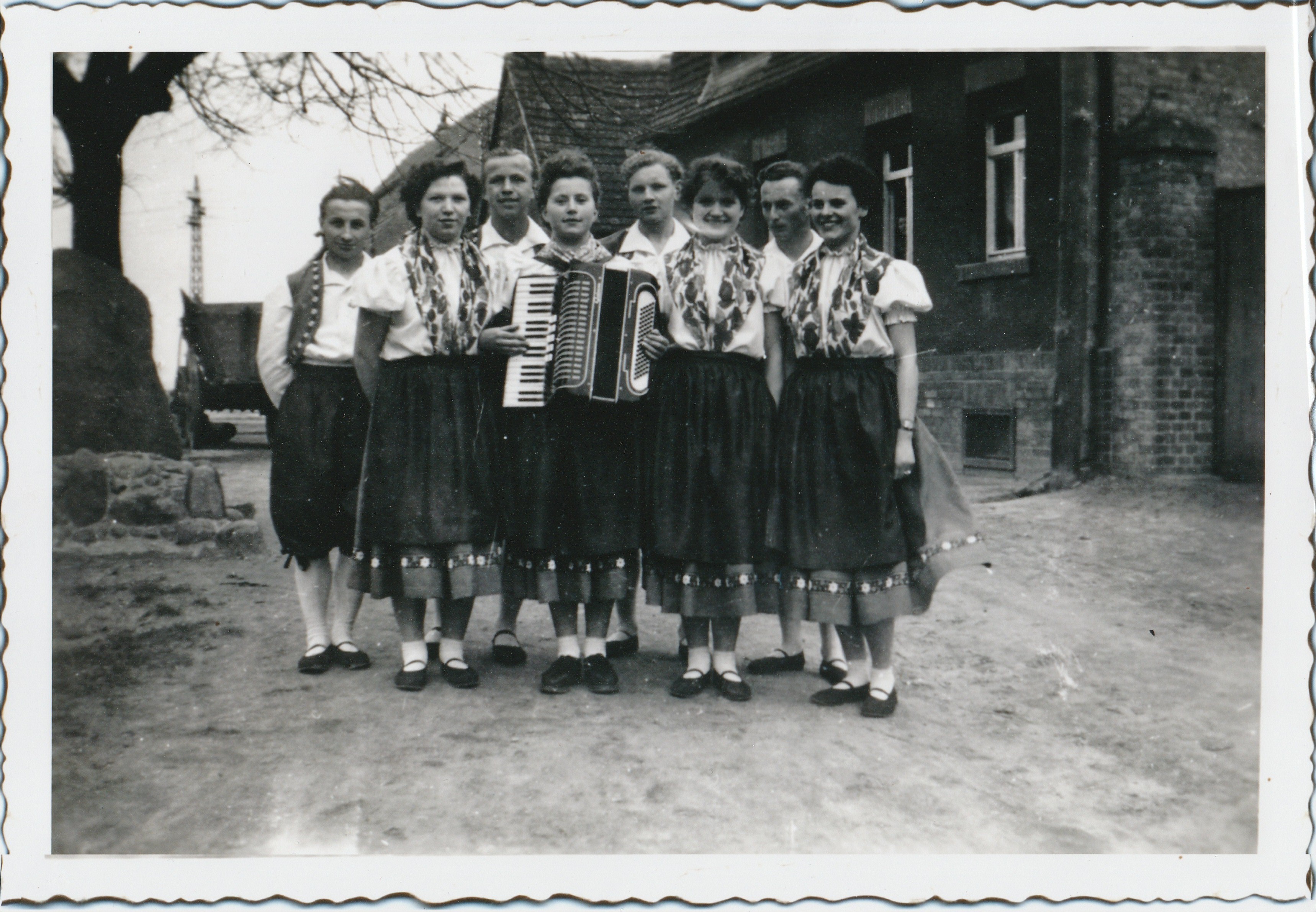 Vorheriges Bild Nächstes Bild Volkstanzgruppe Die Fraßdorfer Volkstanzgruppe hat Aufstellung genommen auf dem Bäckerplatz. Die Gruppe bestand nur wenige Jahre, aber ist noch heute bei den Fraßdorfern in Erinnerung.