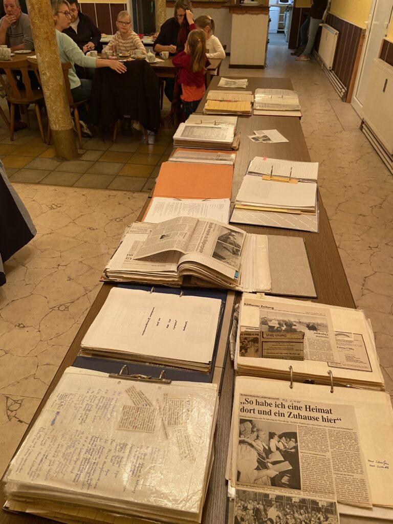 Die Teilnehmer konnten sich dann bei einem gemütlichen Kaffeetrinken im Dorfgemeinschaftshaus aufwärmen und sich in dort von Günther Fischer und Roswitha Schulze gesammelten und ausgelegten Unterlagen und Chroniken über weitere Geschehnisse in und um Fraßdorf informieren.