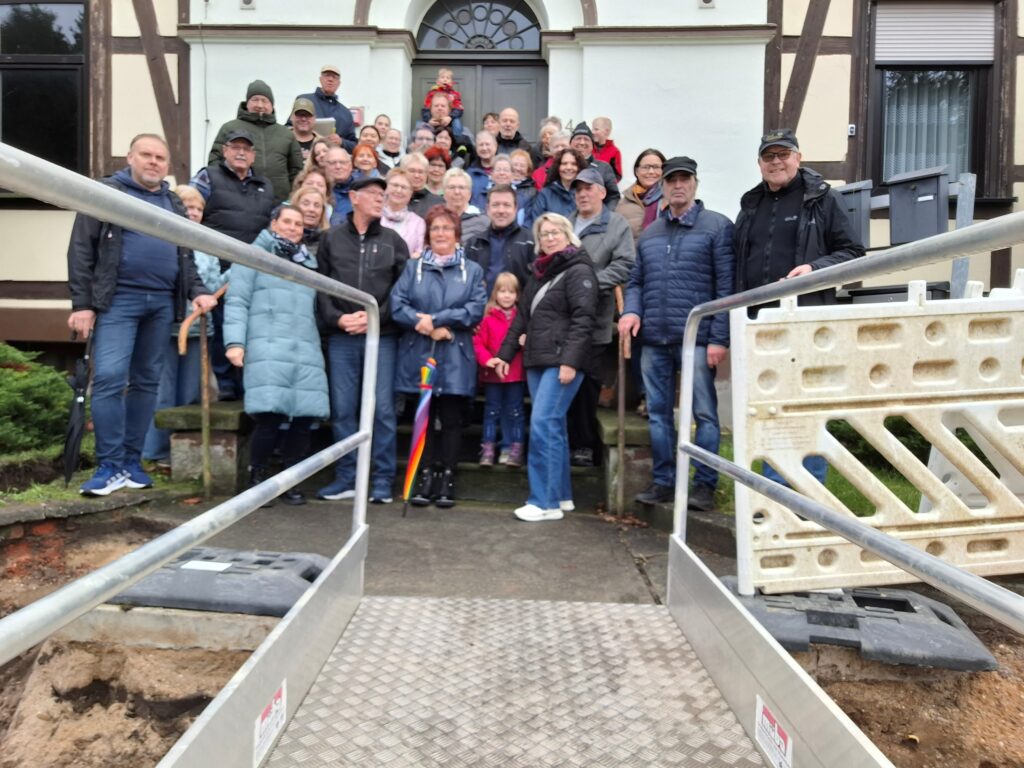 Insgesamt sind 58 Fraßdorfer und Gäste am 16.11.2025 der Einladung von Herrn Günther Fischer zu einem Dorfspaziergang durch Fraßdorf gefolgt. Sie nahmen alle für ein Foto auf den Treppenstufen des Gutshauses Aufstellung!