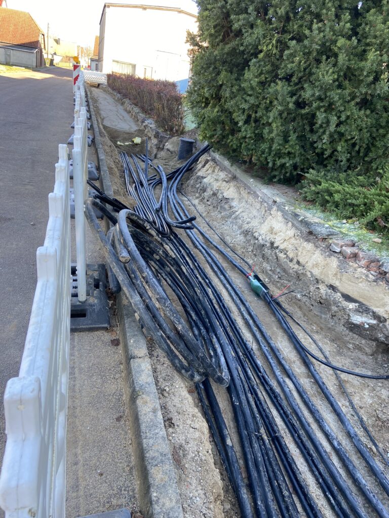 Auch die Hausanschlüsse im übrigen Dorf sollen dann in Bälde über Erdkabel erneuert werden. Damit verbunden ist auch die Neuinstallation der Dorfbeleuchtung. Alle Freileitungen werden verschwinden und unsere Linden können dann ungehindert wachsen.