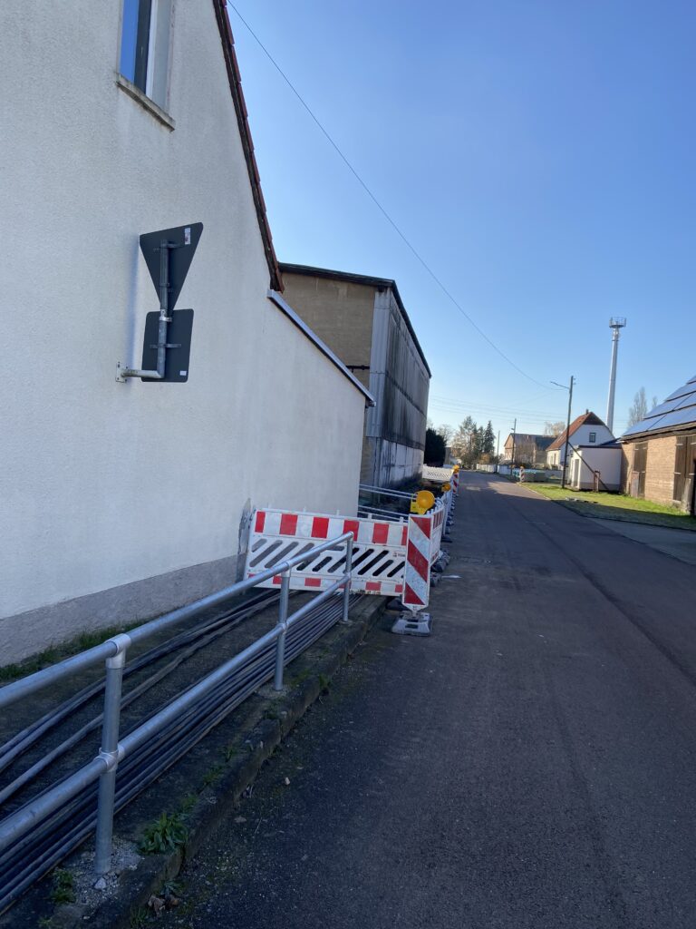 Dafür wird der Bürgersteig vom Feuerwehrhaus bis Dorfgemeinschaftshaus genutzt und aufgebaggert.