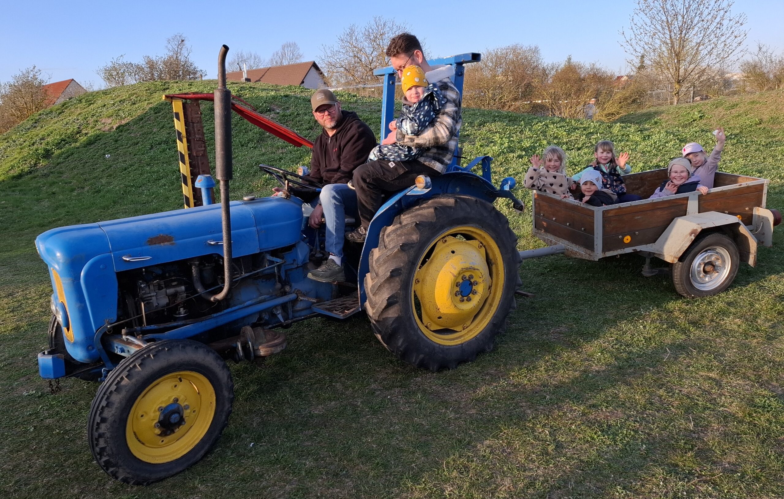 Zum Schluss zog Ronny Burghausen mit seinem Traktor mit den Kindern noch eine Ehrenrunde um den Brennplatz.